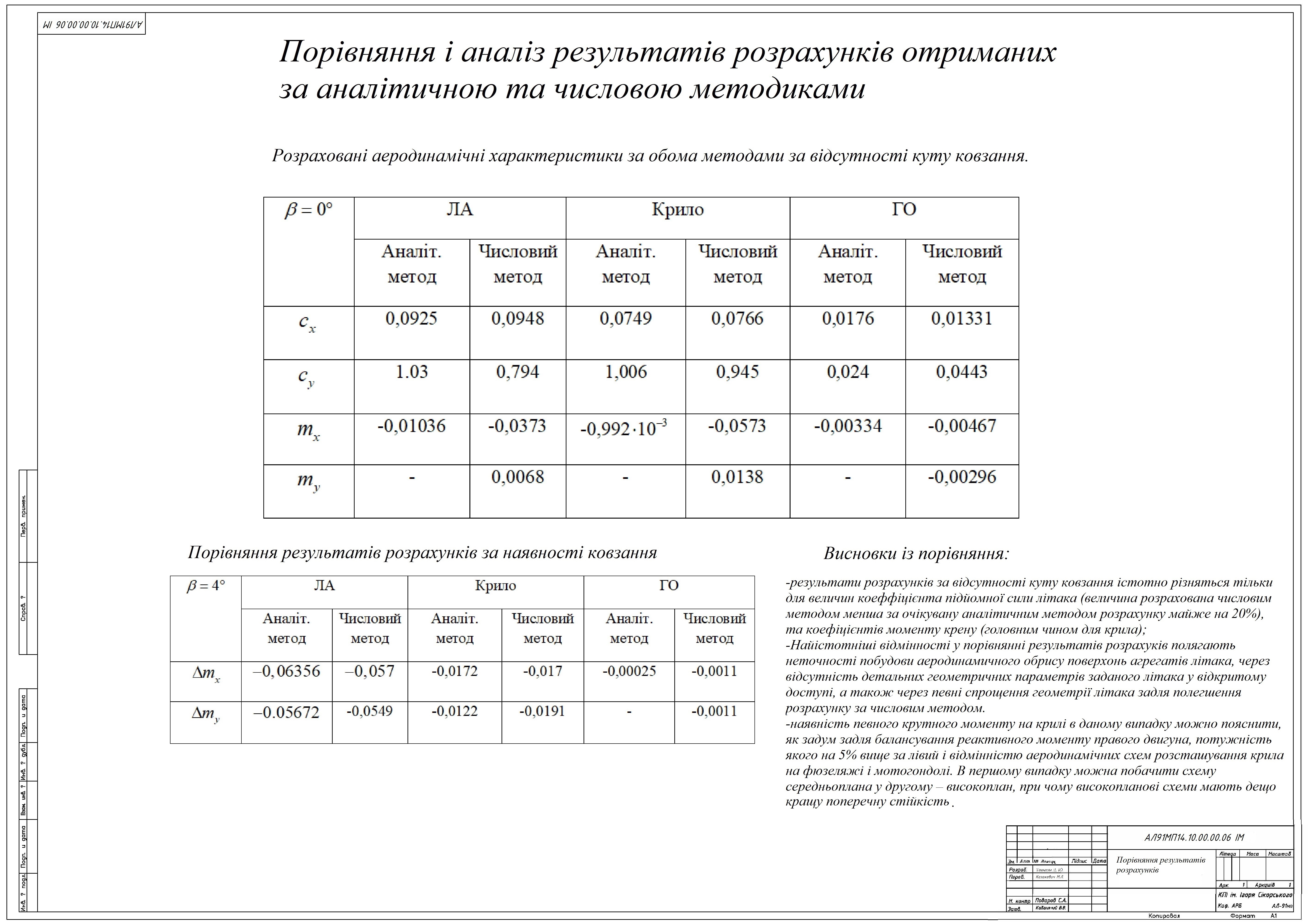 і точності розробленого методу аналітичного аеродинамічного розрахунку літака